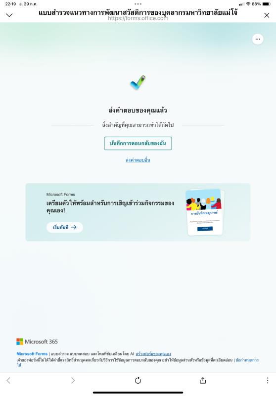ตอบแบบสำรวจ"แนวทางการพัฒนาสวัสดิการของบุคลากรมหาวิทยาลัยแม่โจ้"