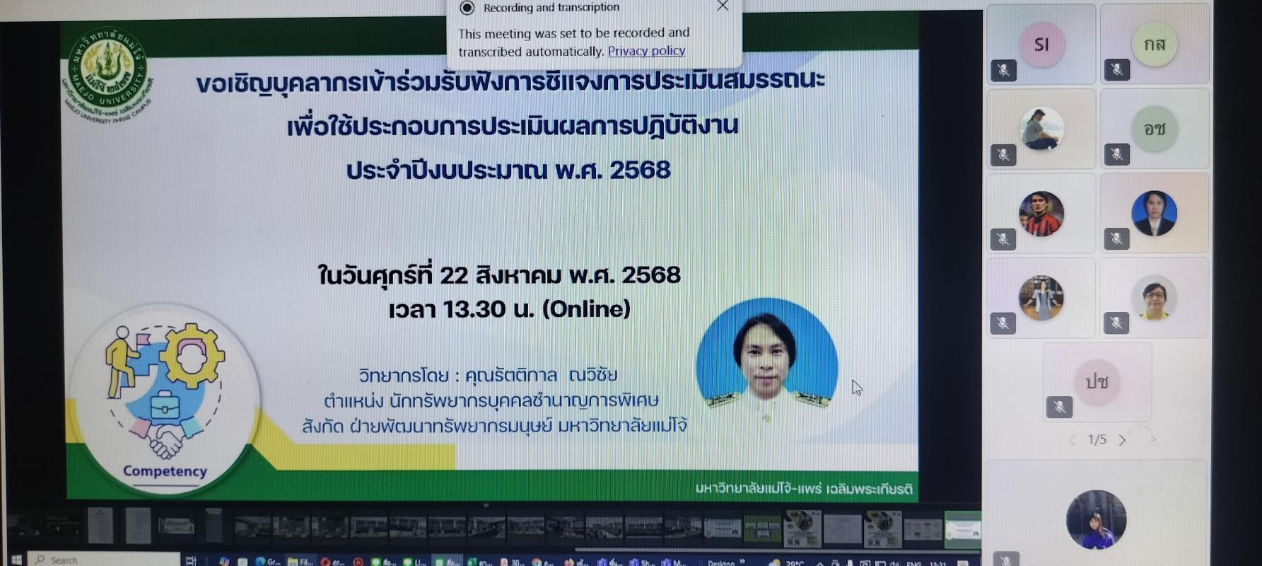 รับฟังการชี้แจงการประเมินสมรรถนะ เพื่อใช้ประกอบการประเมินผลการปฏิบัติงาน ประจำปีงบประมาณ พ.ศ. 2568